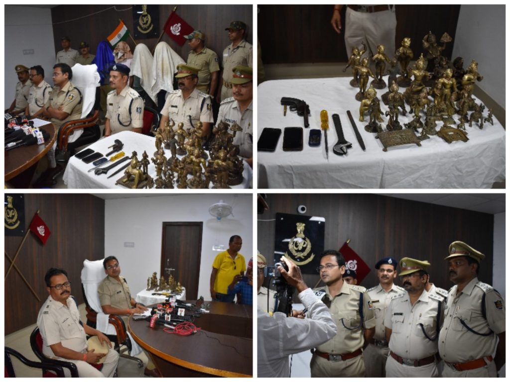 ତେବେ ଜିଲ୍ଲାର ବିଭିନ୍ନ ସ୍ଥାନରୁ ମଧ୍ୟରାତ୍ରିରେ ମୂର୍ତ୍ତି ଚୋରି ହେଉଥିବା ନେଇ ଥାନାରେ ମାମଲା ରୁଜୁ ହୋଇଥିଲା। ମୂର୍ତ୍ତି ଚୋରଙ୍କୁ ଧରିବା ପାଇଁ ପୁଲିସ ସ୍ବତନ୍ତ୍ର ଟିମ୍ ଗଠନ କରିଥିଲା। ଅଭିଯୁକ୍ତମାନଙ୍କୁ ଗିରଫ କରିବା ପାଇଁ ବିଭିନ୍ନ ସ୍ଥାନରେ ଚଢ଼ଉ ଜାରି ରଖିଥିଲା। ପୁଲିସ ୪ ଜଣ ଅଭିଯୁକ୍ତଙ୍କୁ ଗିରଫ କରିବା ସହ ସେମାନଙ୍କ ଠାରୁ ୩୧ଟି ମୂର୍ତ୍ତି ଓ ନମ୍ବରବିହୀନ ଏକ ବାଇକ୍ ଜବତ କରିଛି।