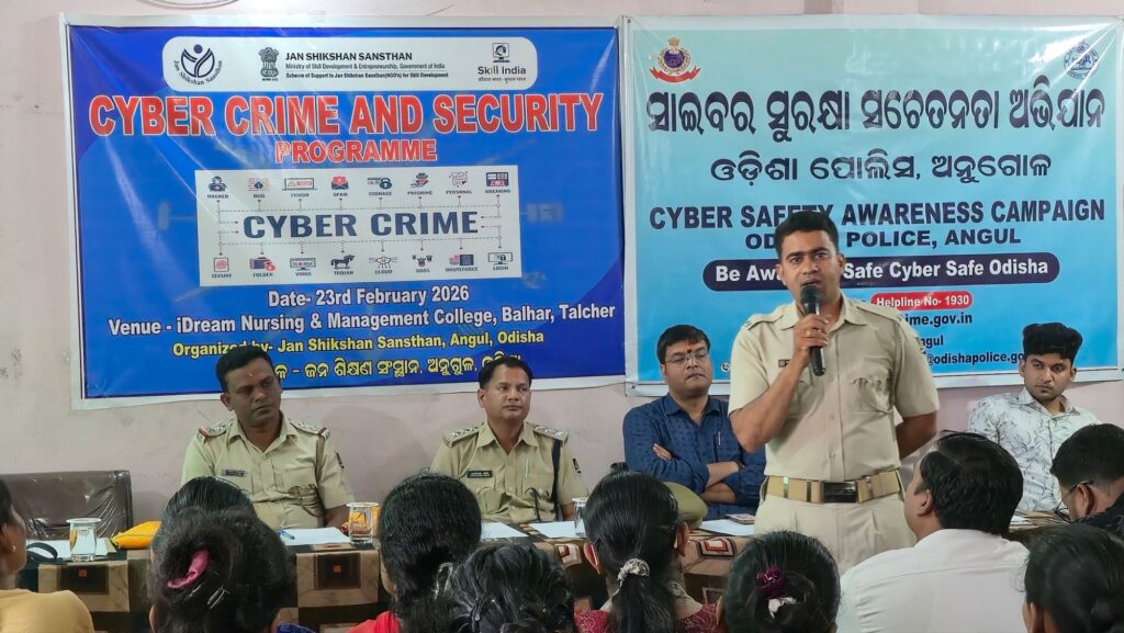 ଖୁସି ଏବଂ ଗର୍ବ କଥା କି ଜେ ଏସ୍ ଏସ୍, ଅନୁଗୁଳ ର ପୂର୍ବ ପ୍ରଶିକ୍ଷାର୍ଥୀ ତଥା ରାଜ୍ୟପାଳ ପୁରସ୍କାର ପ୍ରାପ୍ତ ଶ୍ରୀ ଆସ୍ଵିନୀକାନ୍ତ ସାହୁ ସାଇବର କ୍ରାଇମ ସଚେତନତା କାର୍ଯ୍ୟକ୍ରମ କୁ ସଞ୍ଚାଳନ କରି ବିଭିନ୍ନ ପ୍ରକାର ସାଇବର ଠକେଇ ଏବଂ ଆଜି ର ସୋସିଆଲ ମିଡିଆ ବହୁଳ ବ୍ୟବହାର ରେ ବିଭିନ୍ନ ସମସ୍ୟା ଦେଖା ଦେଇଛି କିନ୍ତୁ ଆଜି ବି ଲୋକ ଲଜ୍ଜା ର ଫାଇଦା ଉଠାଇ ସାଇବର କ୍ରାଇମ କରୁ ଥିବା ଲୋକ ବଢିବା ରେ ଲାଗିଛନ୍ତି। ସରକାର ଙ୍କ ସଂଚାର ସାଥୀ ଆପ୍ଲିକେସନ କିମ୍ବା ସାଇବର ଥାନ ମାଧ୍ୟମରେ କ୍ରାଇମ ରୋକିବା ପାଇଁ ସାଇବର ଥାନା ସବୁ ବେଳେ ପ୍ରସ୍ତୁତ ଅଛି ବୋଲି ସାଇବର ଥାନା ଅଧିକାରୀ ଶ୍ରୀ ଖଲେସ୍ୱର ସେଠୀ ନିଜର ମତାମତ ରଖି ଥିଲେ। ସଚେତନତା କାର୍ଯ୍ୟକ୍ରମ ରେ ୧୦୦ ରୁ ଉର୍ଦ୍ଧ ଛାତ୍ରଛାତ୍ରୀ ଭାଗ ନେଇ ଥିବା ବେଳେ ଜେ ଏସ୍ ଏସ୍ କାର୍ଯ୍ୟକର୍ତ୍ତା ଏବଂ ଆଇଡ୍ରିମ୍ କଲେଜ ର କାର୍ଯ୍ୟକର୍ତ୍ତା ମାନେ କାର୍ଯକ୍ରମ ପରିଚାଳନା ରେ ସହଯୋଗ କରିଥିଲେ